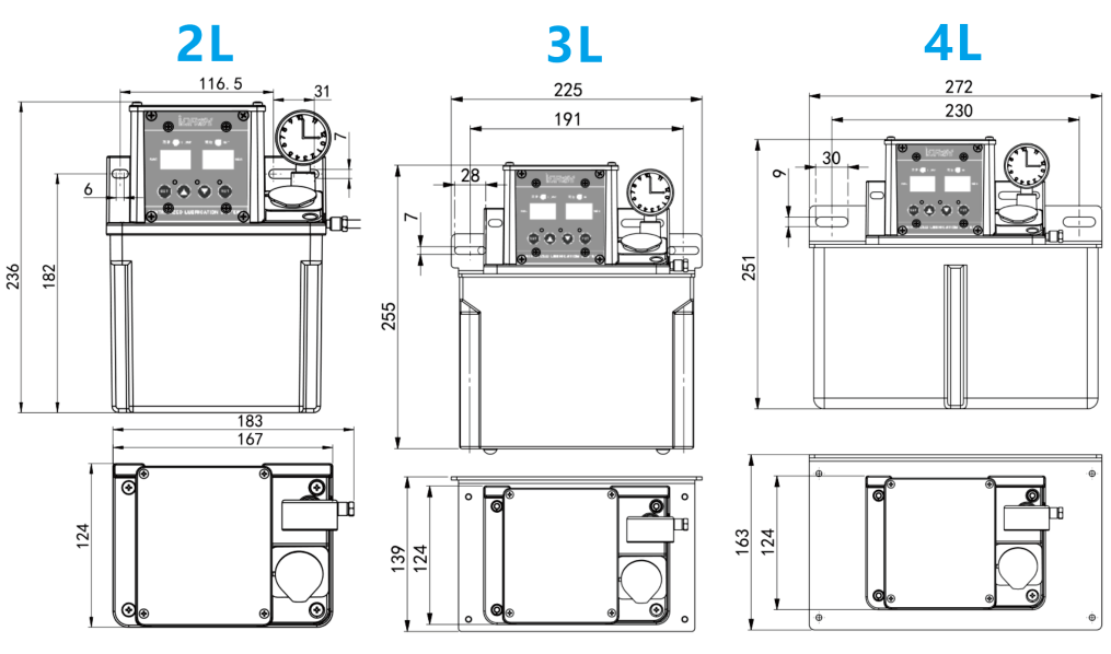 3、面板指示燈可顯示出注油機(jī)的潤滑和間歇狀態(tài)。