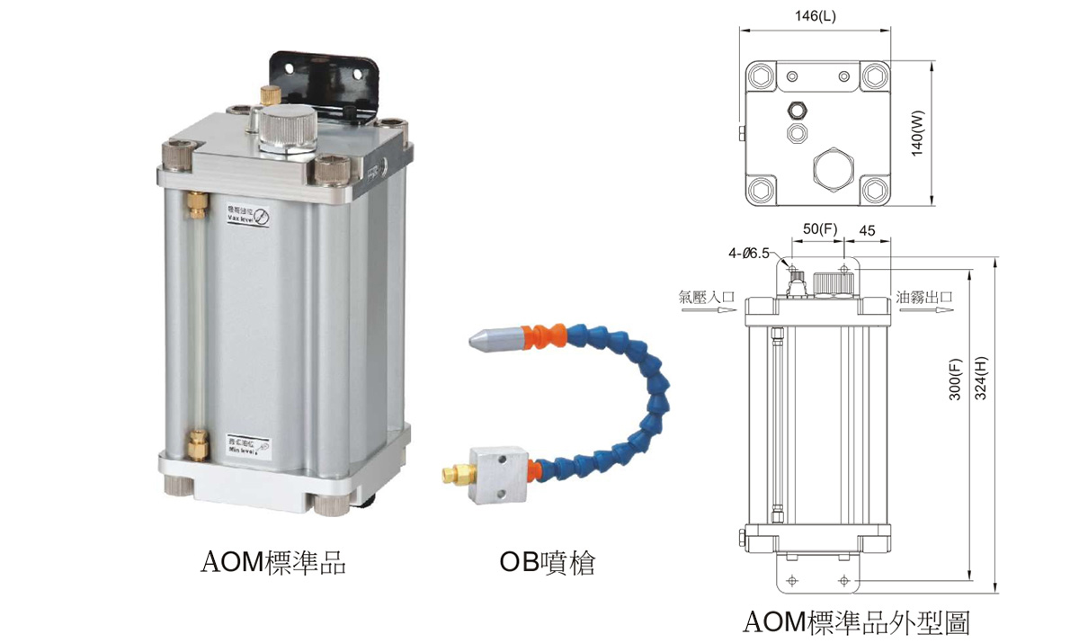 2.AOM型油霧式氣動(dòng)注油機(jī)適用于潤滑高速切削、大面積潤滑、特殊加工潤滑冷卻,油霧混合均勻,效果良好