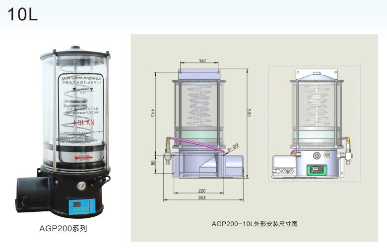 AGP200電動潤滑泵可與本公司的遞進式分配器(ASV)組成遞進式潤滑系統(tǒng),也可與本公司單線式分配器(ASL)組成單線潤滑系統(tǒng)進行集中潤滑。該泵主要應(yīng)用于風電,工程機械等行業(yè)上。